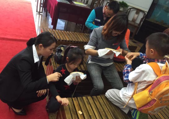 2015年10月7日,长沙市瞳心画室的小朋友来到天利湘绣旗下博物馆——湖南省沙坪湘绣博物馆开展互动活动。上午参观湘绣博物馆,参照绣品画画;下午开展趣味竞猜互动活动和学习手工刺绣。